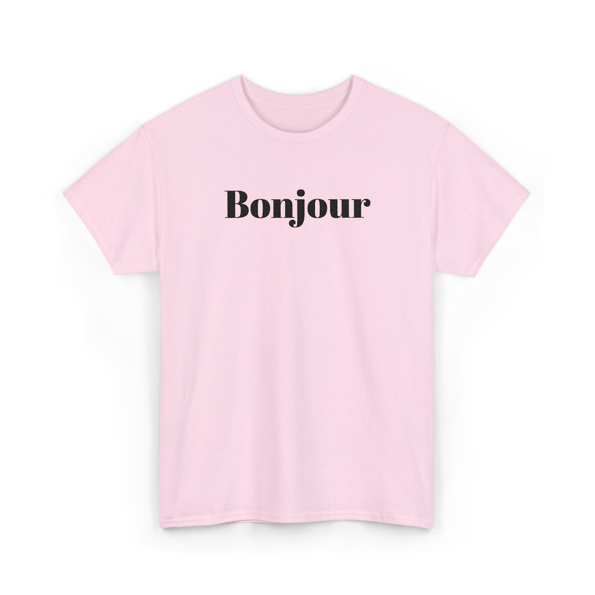 Bonjour - Black Embroidery Unisex Cotton T-shirt