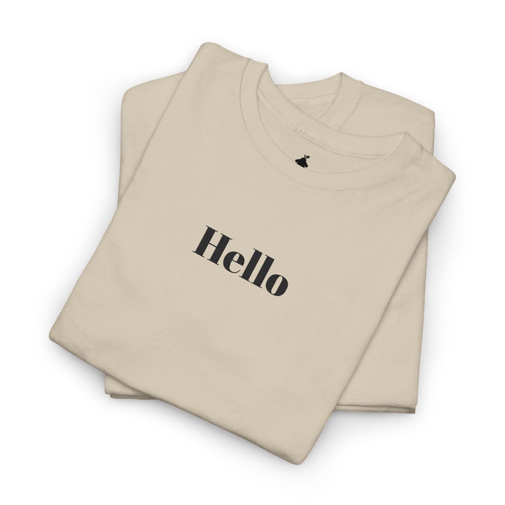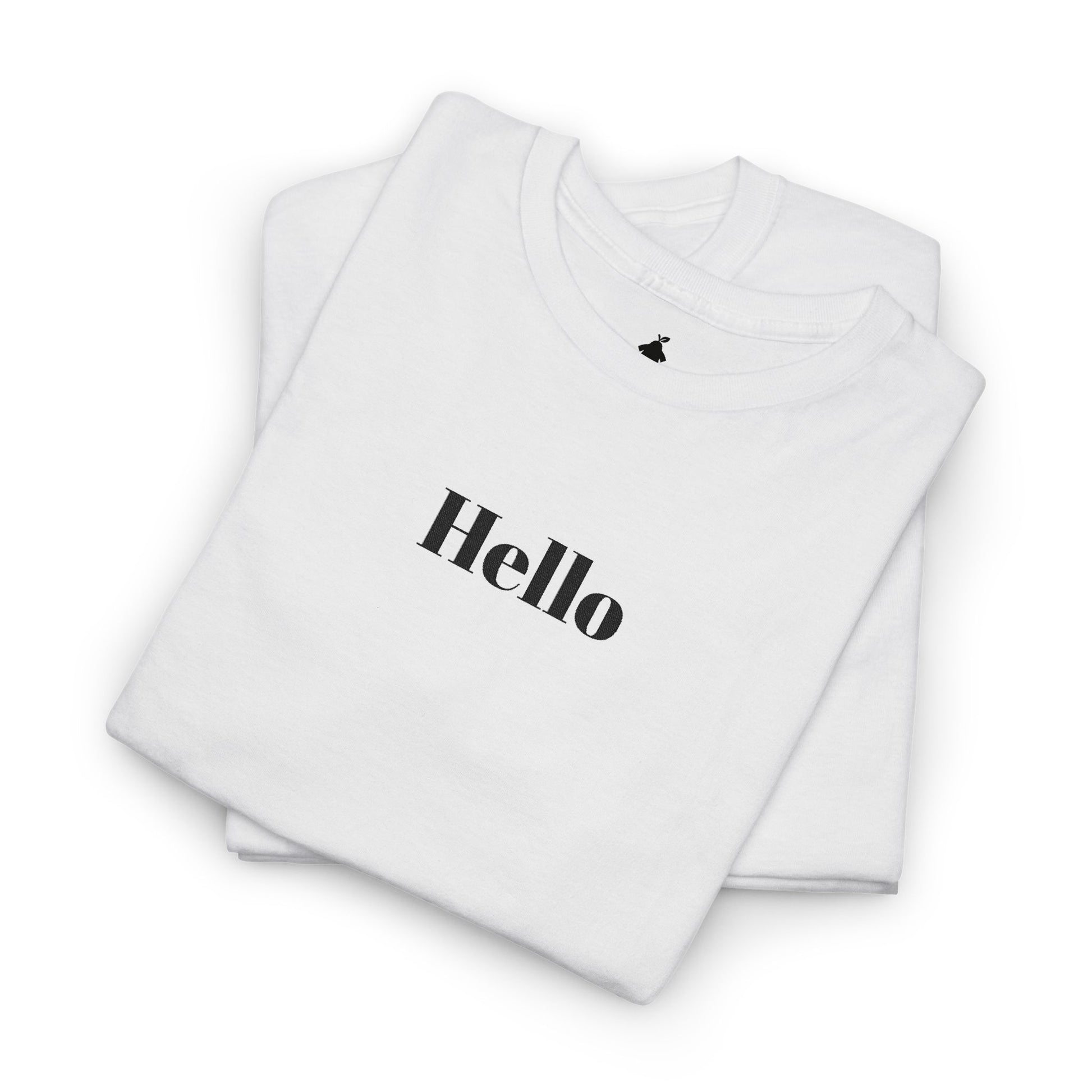 Hello - Black Embroidery Unisex Cotton T-shirt